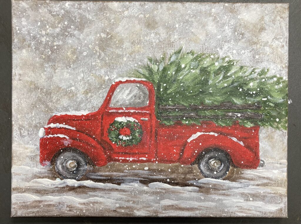 Inspired by a little white chapel from Sara’s childhood, this painting is sure to bring up some cozy, nostalgic vibes! An outline of the chapel and windows is prepared ahead of time, so drawing skills are not required. This is a paint and sip style event. We provide coffee, tea, cocoa and cider, or bring your own beverage and snacks. Sara implements techniques with sponges and spattering to help you achieve this snowy scene. We even paint with our fingers to get the desired effects of a glowing light in the windows. All levels of painters are welcome. Regardless your skill level or previous experiences with painting, our goal is to foster a unique art experience for you in our studio, whether there’s 4 painters present or 24. Ages 16+ is recommended for this painting.